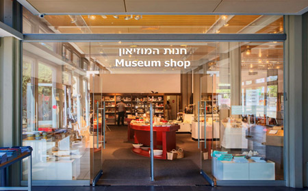 החנות רחבת הידיים, המשתרעת על שטח של 250 מ"ר במבנה הכניסה למוזיאון, מציעה מבחר עשיר איכותי וייחודי של מתנות וחפצי חן, מעבודותיהם של טובי המעצבים והיוצרים בישראל. בחנות מגוון רפליקות, מוצרי יודאיקה, תכשיטים, כלי קרמיקה, זכוכית ,טקסטיל ואופנה ,ספרים וקטלוגים המלווים את התערוכות במוזיאון וכן עיצובים חדשניים ומקוריים מעשה ידי דור צעיר ויצירתי של מעצבים מקומיים.